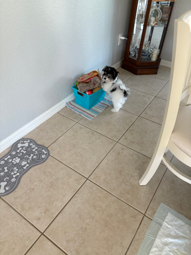 He loves playing he loves his mom and dad and his brother Stewie. We’ve only had them for one day and he knows his name. He’s a very smart puppy.🐾🐾